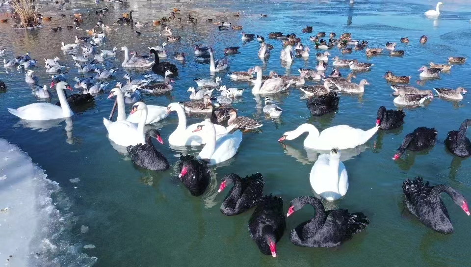 据了解,景区员工为了让天鹅、黑水鸡等留鸟有觅食、嬉戏的栖息地,采取破冰等措施,令天鹅岛的水域即使在严寒下也不结冰。与此同时,沙湖景区通过人工造雪,打造了沙漠上的冰雪世界,推出了卡丁车、滑圈、骆驼等娱乐项目,丰富了游客的冬季外出体验。