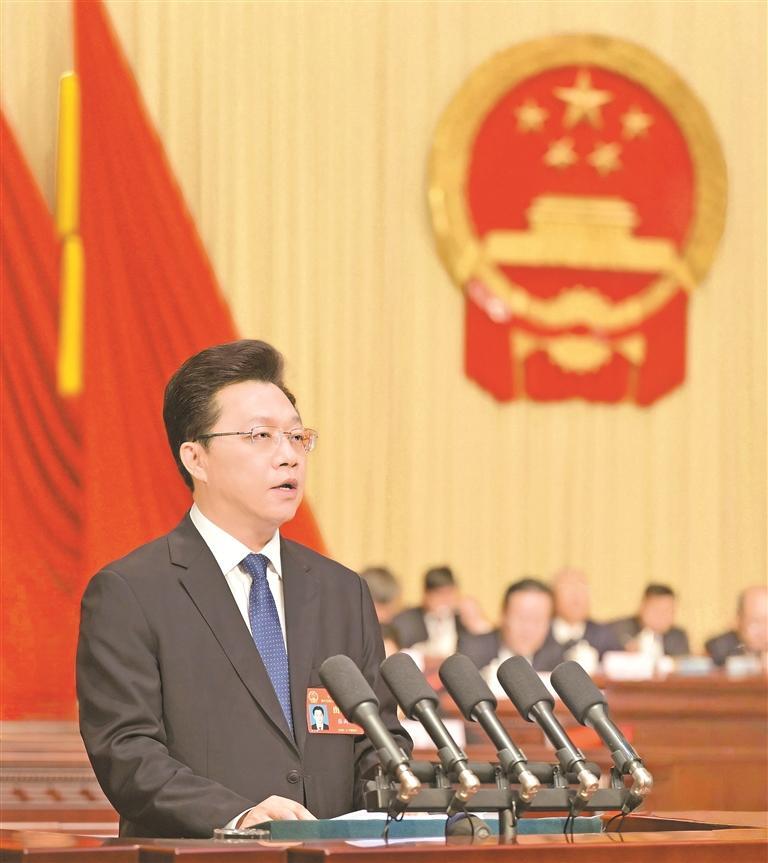 2月3日,宁夏回族自治区第十三届人民代表大会第四次会议在银川开幕。自治区人民政府主席张雨浦作政府工作报告。记者 王鼎 摄