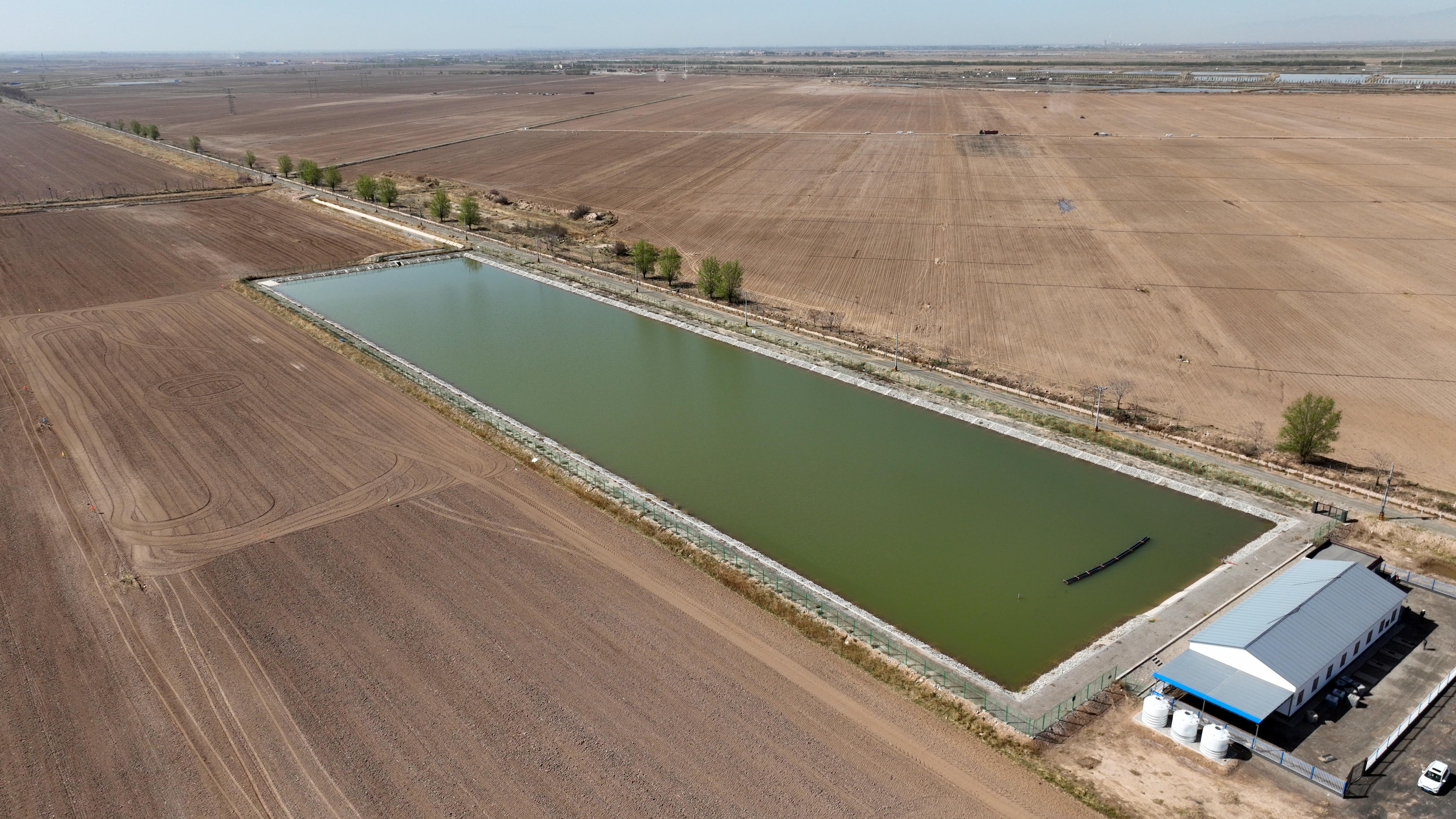 平罗县宁夏农垦前进农场高效节水B区泵站蓄水池。