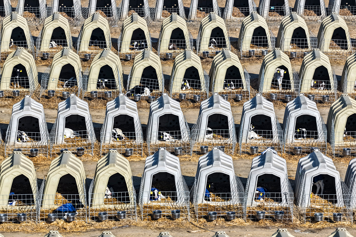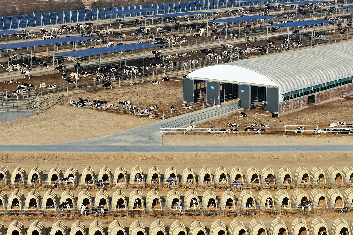 物联网技术贯穿养殖全过程,24小时不间断地监测温度、湿度和空气质量。“我们的目标是让每头犊牛都生活在最适宜的环境中。目前,一期共4000个‘房间’已经‘客满’,断奶犊牛棚已住了3000头断奶的犊牛。”李作明指向不远处几栋崭新的圈舍,“那边二期的育肥牛‘新房’也已经准备好了,很快就有2000头新成员入住。”